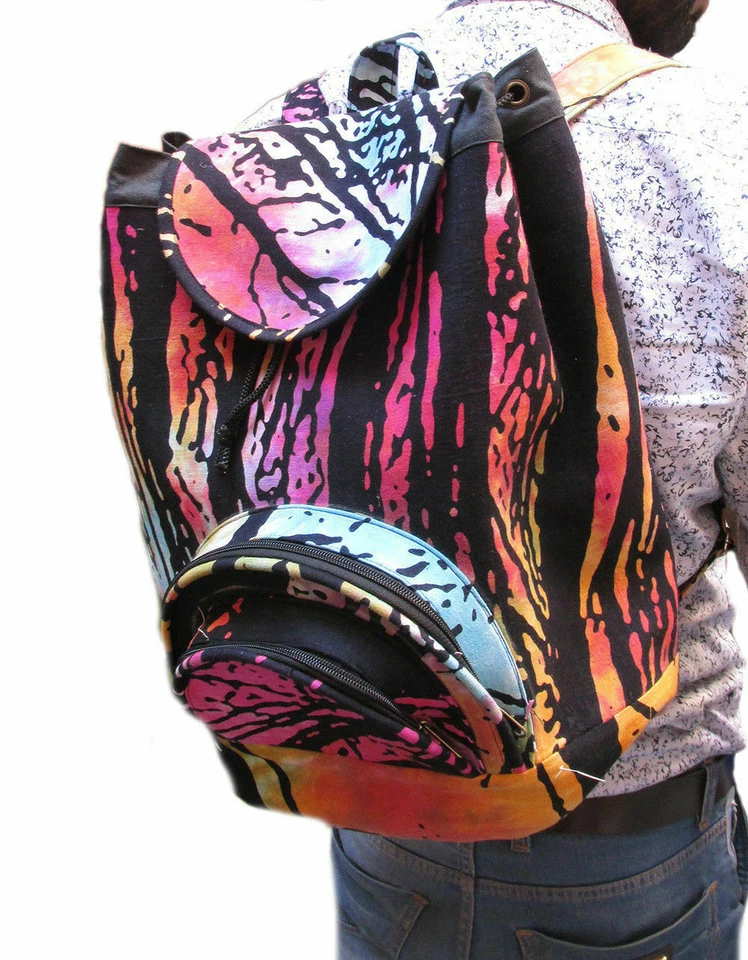 Der indische Bildschirm druckte Unisex Mandala -Rucksack aus Rajasthan India. Dieser indische Rucksack ist vollständig auf Baumwolle gedruckt.