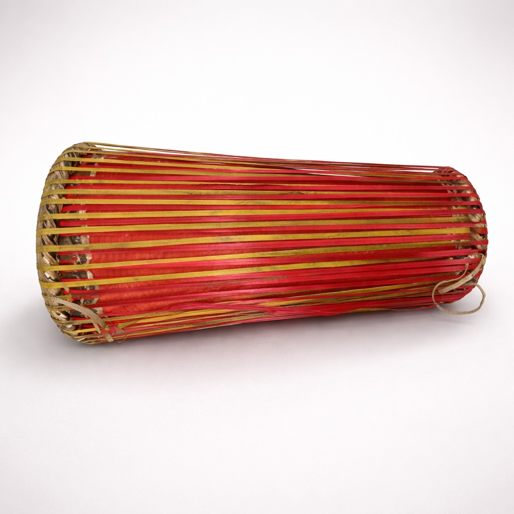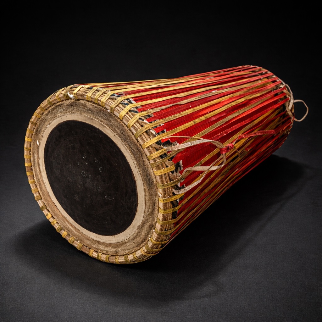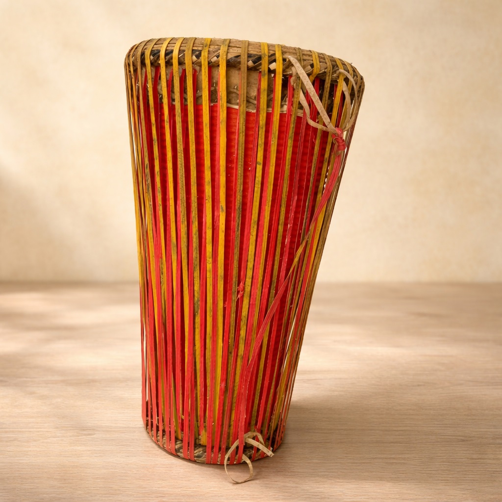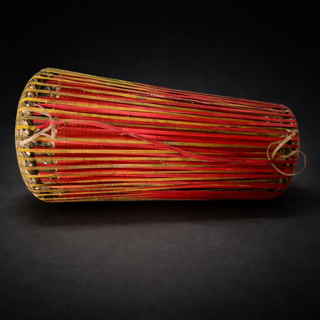 The playing technique involves rhythmic striking of both heads using the palm of the hand. When struck, the heads vibrate to produce sound, creating rich and traditional rhythmic tones.