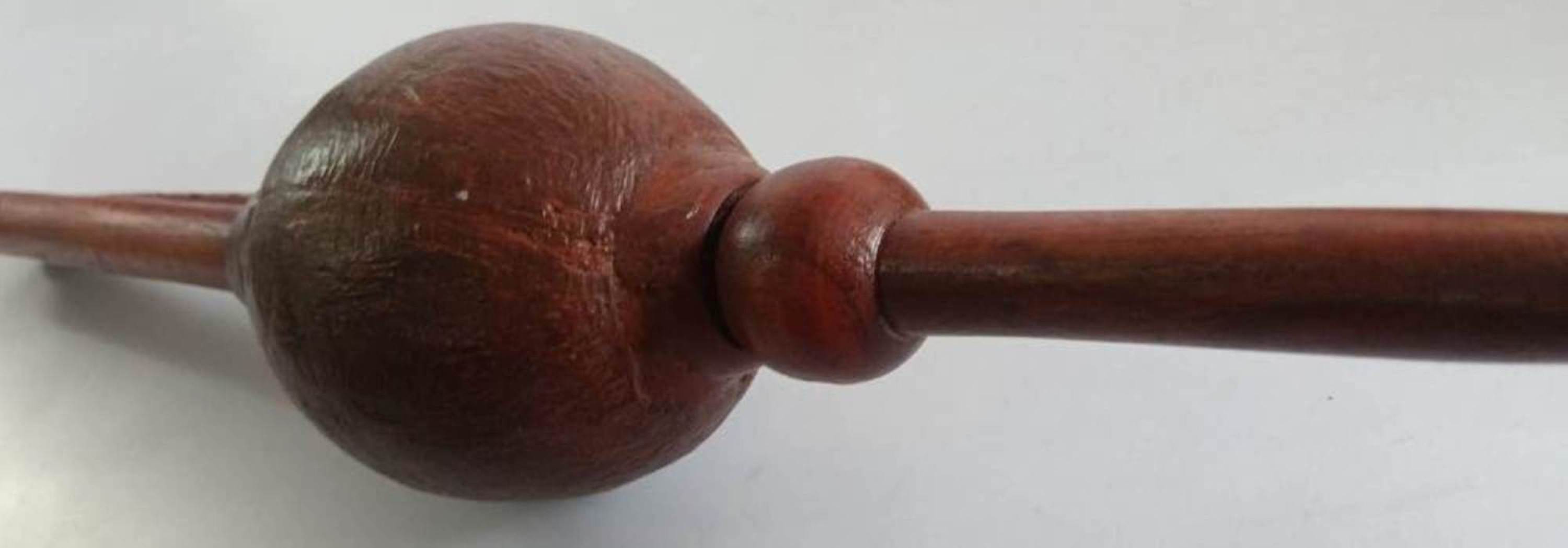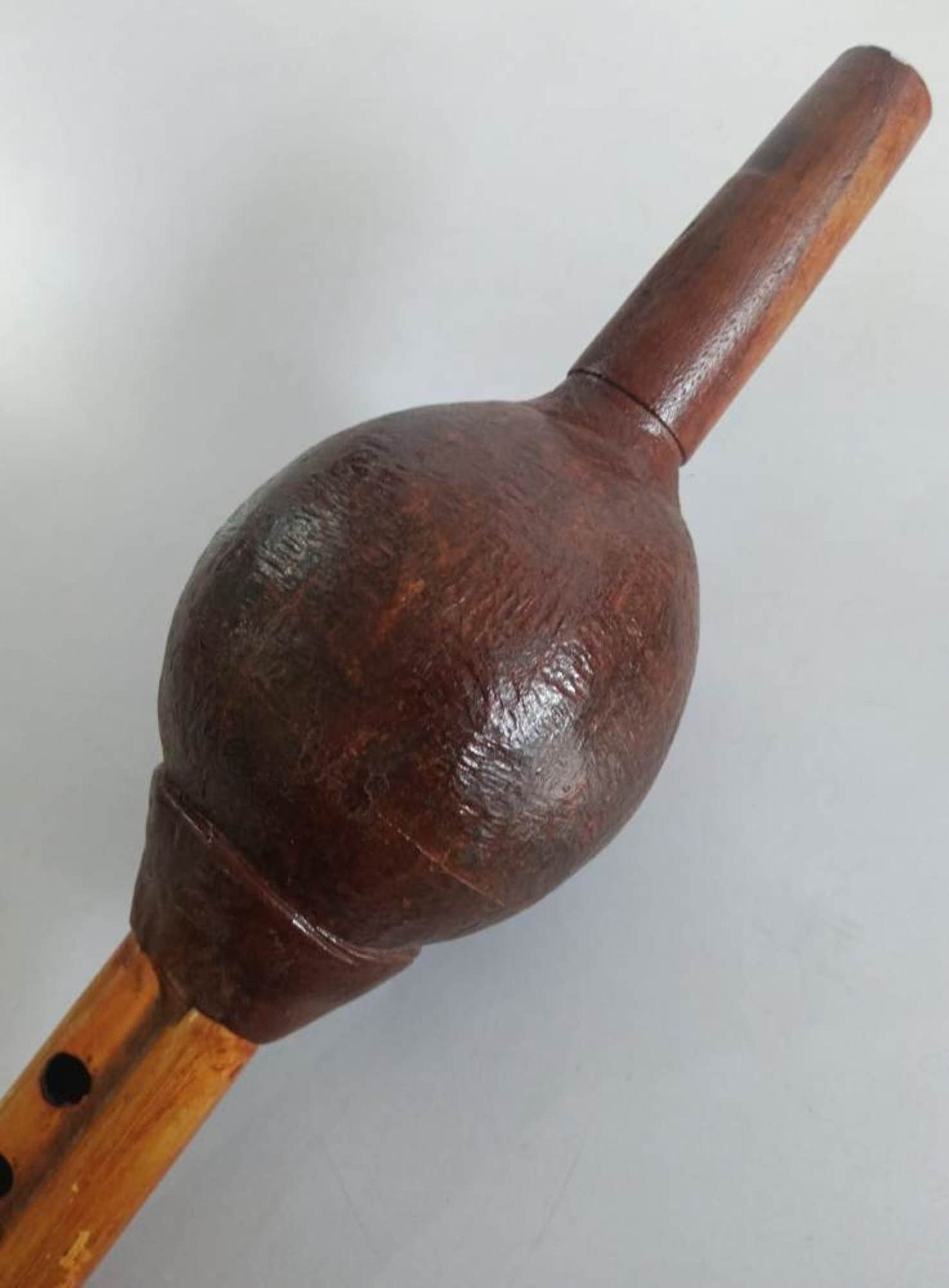 The pungi is traditionally made from a dried bottle gourd. Often, the neck of the gourd is carved for aesthetic reasons. On the other end, two (sometimes one or three) reed or bamboo pipes are connected. These are known as the jivala. One of the pipes has 5 - 9 holes and plays the melody; the other pipe is for drone. The jivala is fitted to the gourd with beeswax, which can be adjusted for pitch modification.