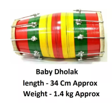 Professional Dholak 7.75" Inch Bayan Gajra Bass & 6" Inch Dayan Treble Head Skin