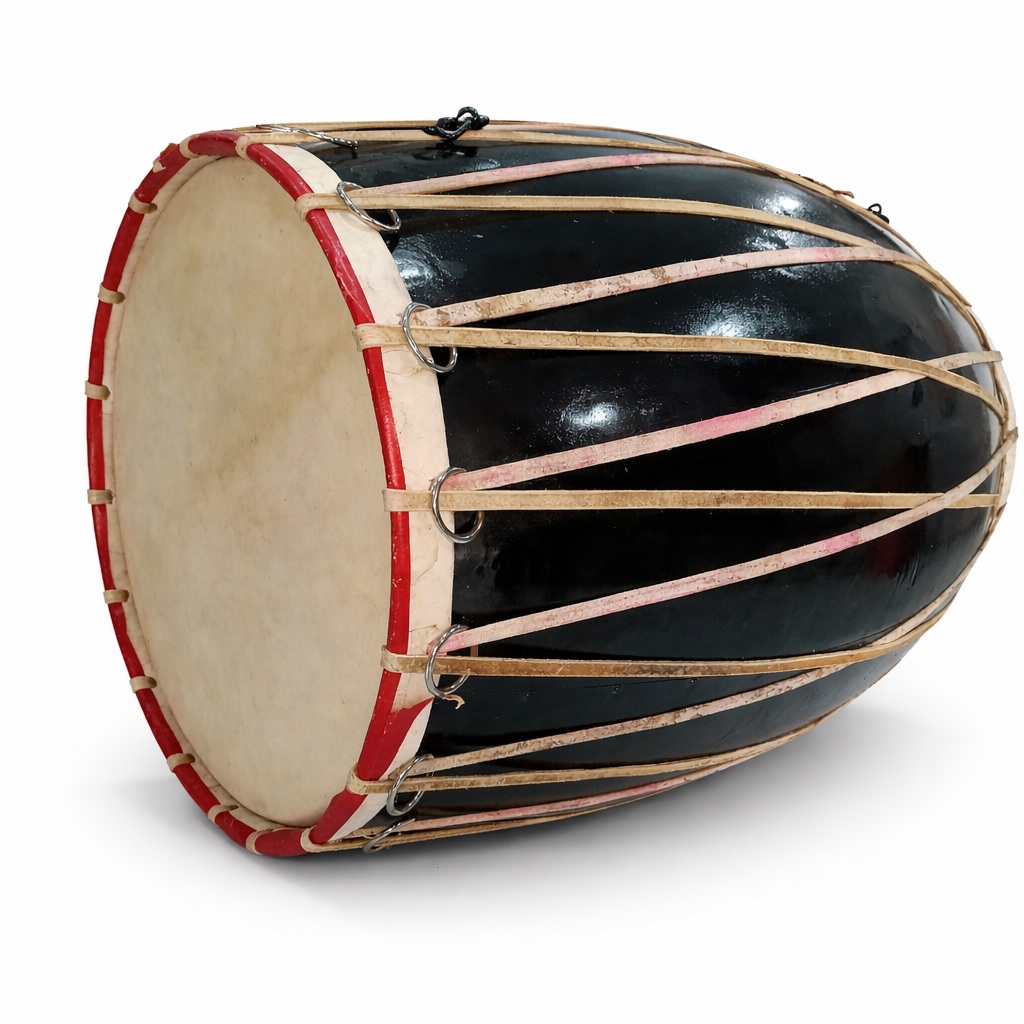 Dhak drum, traditional Indian percussion instrument, Bengali dhak, Durga Puja dhak, Indian folk drum, Hindu festival musical instrument, Assam dhak drum, hand played drum, ethnic Indian music instrument, membranophone drum, Indian cultural instrument, religious festival drum, handcrafted dhak drum