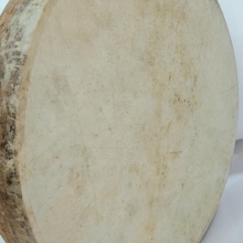 Tabla is a pair of drums. It consists of a small right hand drum called Dayan and a larger metal one called Bayan. The Dayan (right hand drum) is made of wood. The Bayan (left hand drum) generally made up of Copper, Brass; steel or iron with a nickel or chrome plate is the most common material. Both feature goatskin drumheads and camel leather straps to adjust the pitch. Black spot on tabla skin are a mixture of gum, soot, and iron filings.