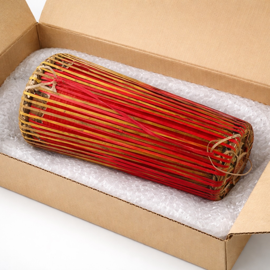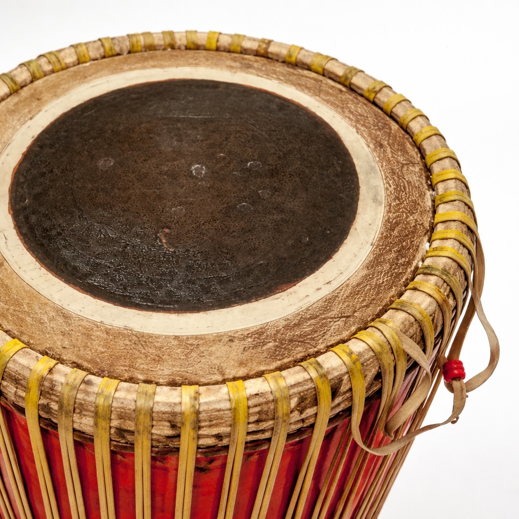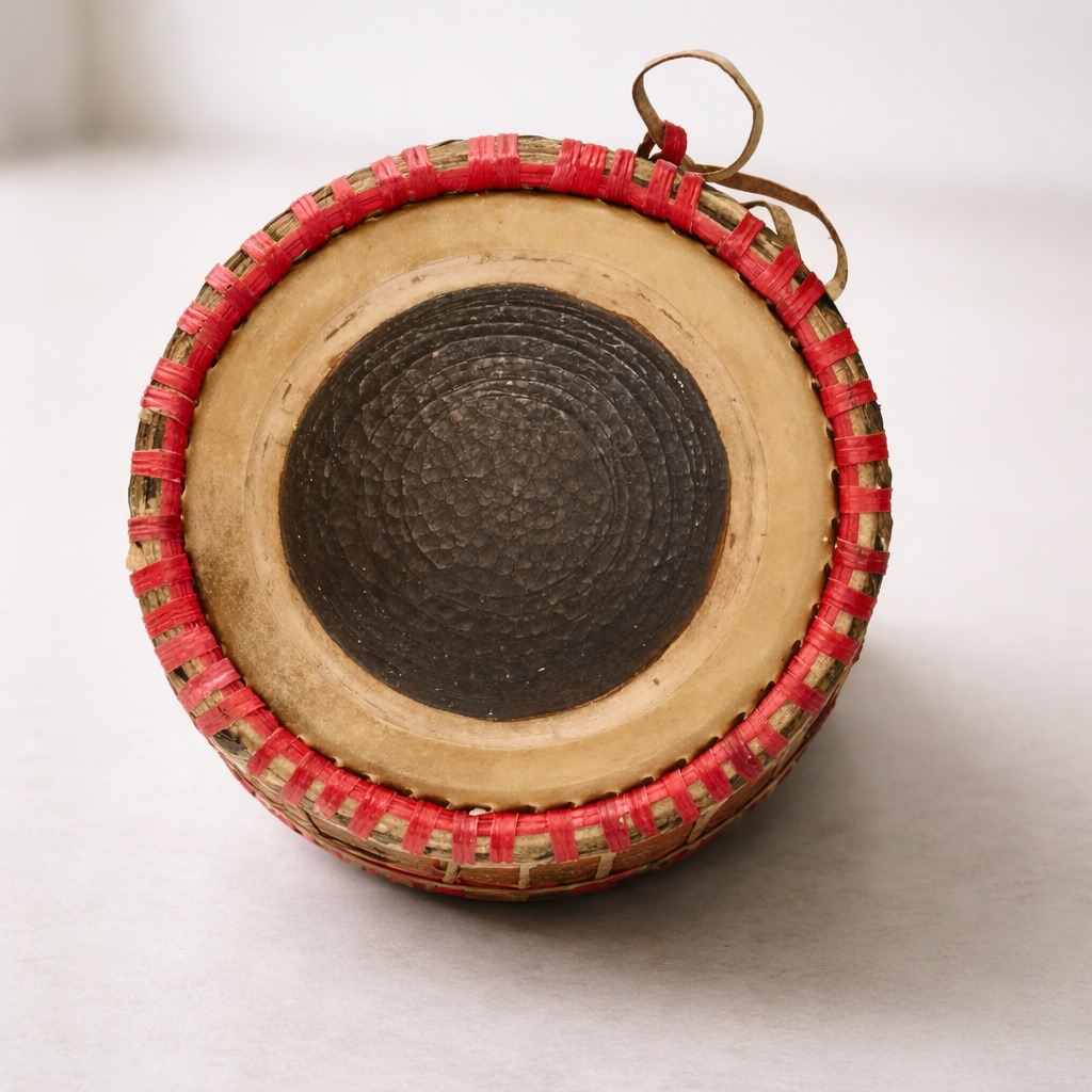 The playing technique involves rhythmic striking of both heads using the palm of the hand. When struck, the heads vibrate to produce sound, creating rich and traditional rhythmic tones.