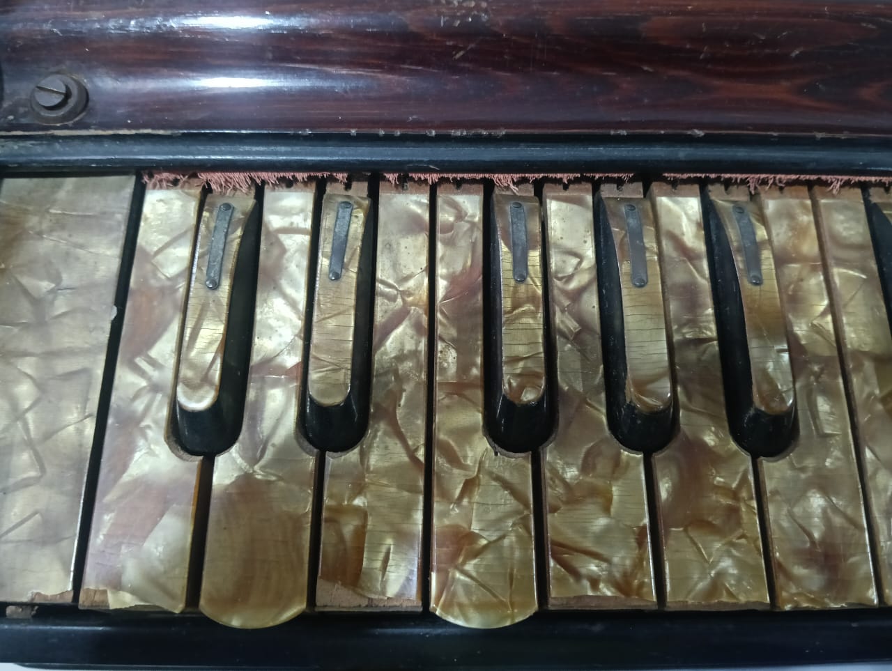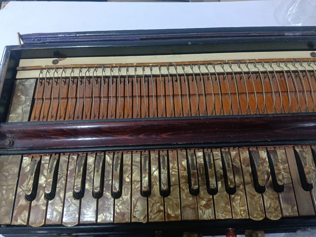 Musical Instrument German Baja 42 Key Multi Bellow 9 Stopper Mahogany Color HarmoniumThis handmade harmonium features 42 keys with a length of approximately 58 cm and a height of approximately 28 cm. The instrument has a reed orientation of horizontal and is made of Himalya Kailwood material with a glossy finish. With an octave of 3.5 and a weight of approximately 10 kg, this harmonium offers a unique and authentic sound for folk and traditional music enthusiasts.