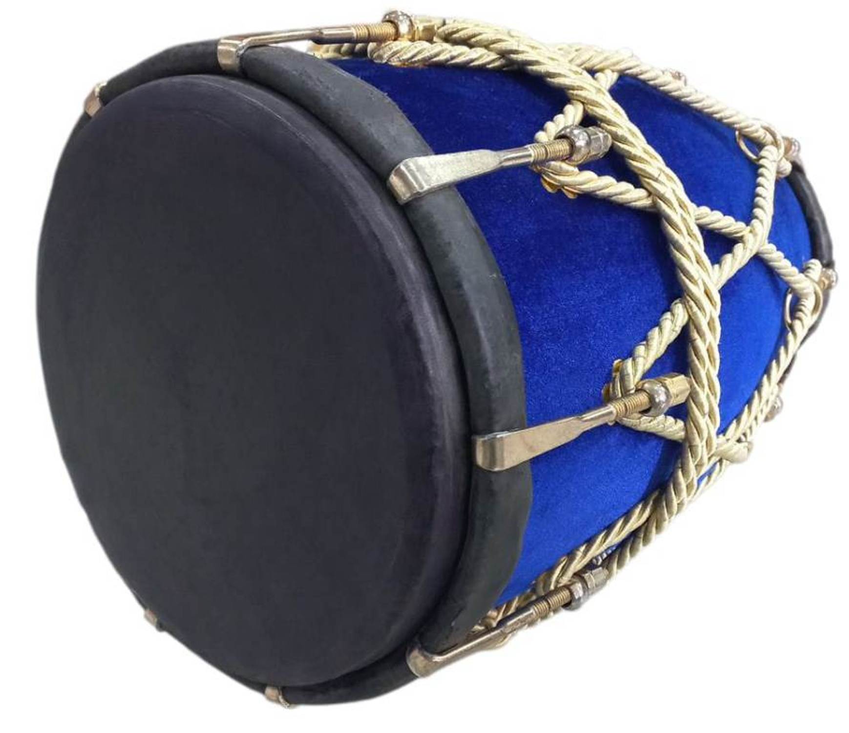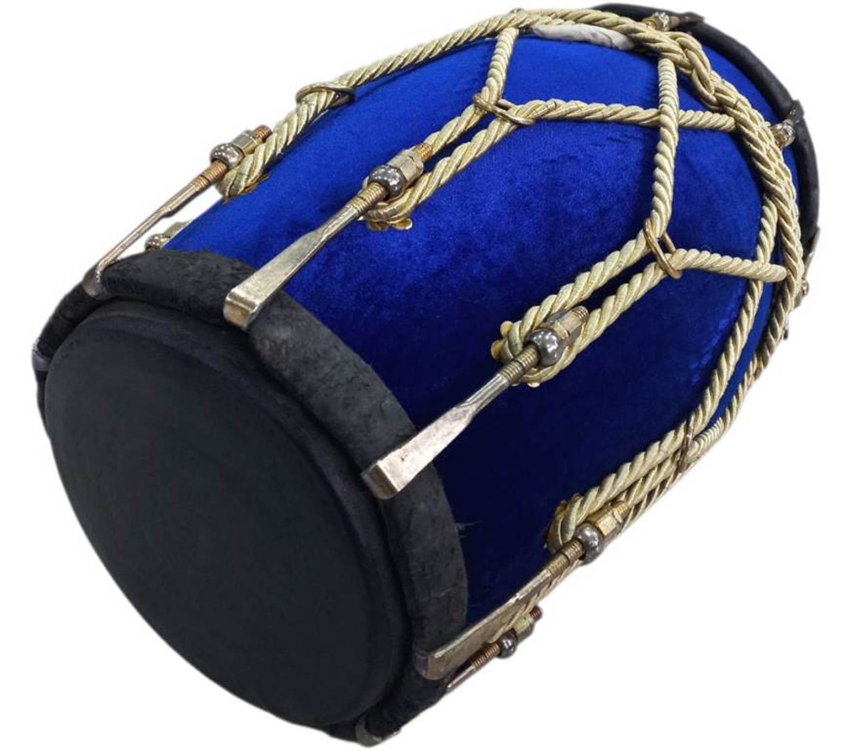 New Professional Blue velvet Dholak With Golden Fitting Instrument With Fiber Box