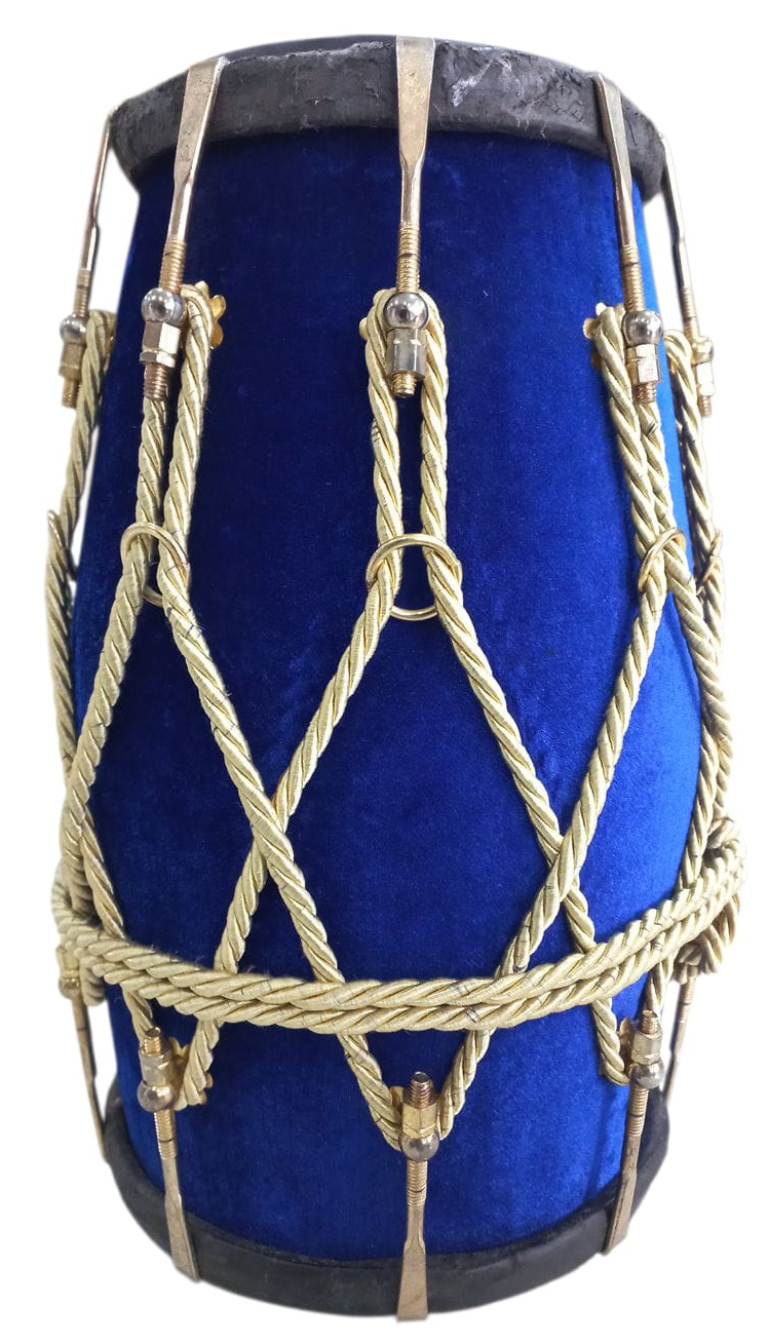New Professional Blue velvet Dholak With Golden Fitting Instrument With Bag