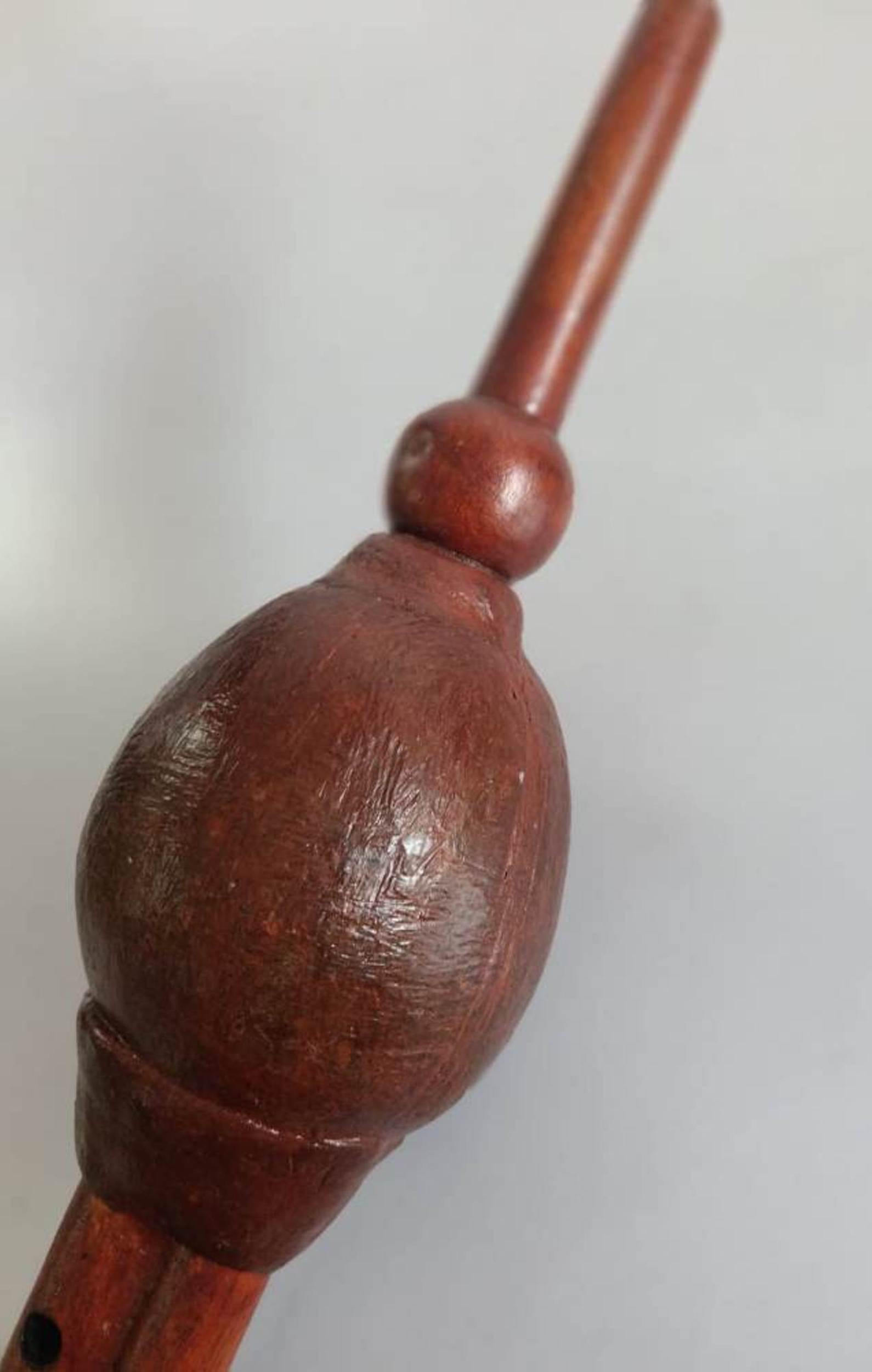 The pungi is traditionally made from a dried bottle gourd. Often, the neck of the gourd is carved for aesthetic reasons. On the other end, two (sometimes one or three) reed or bamboo pipes are connected. These are known as the jivala. One of the pipes has 5 - 9 holes and plays the melody; the other pipe is for drone. The jivala is fitted to the gourd with beeswax, which can be adjusted for pitch modification.