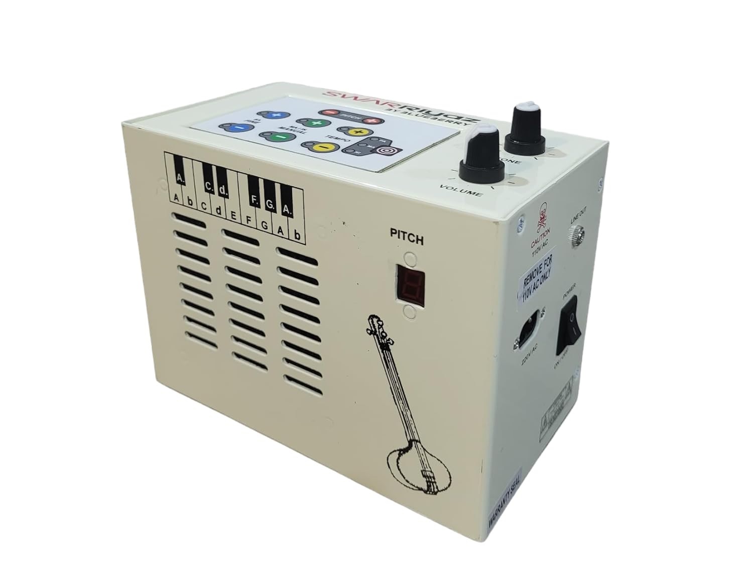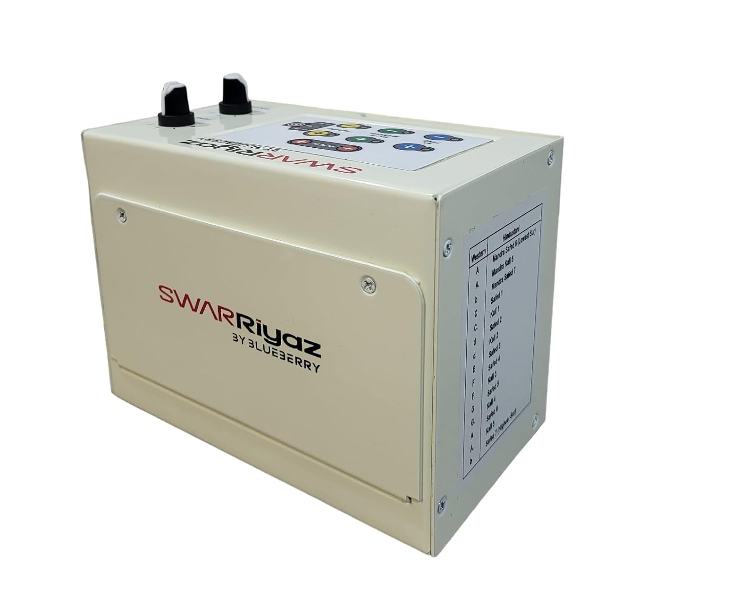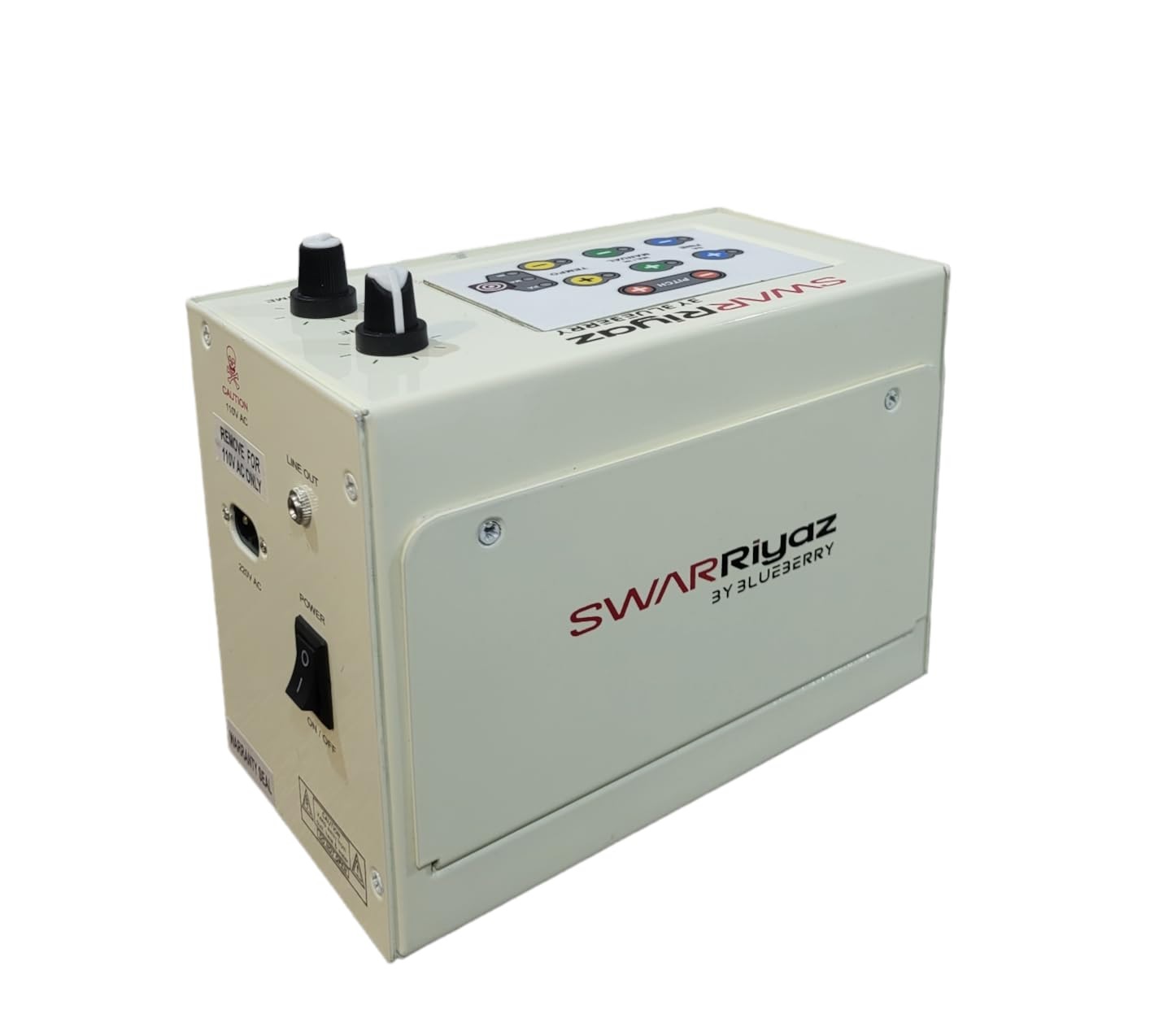 SwarRiyaz is a Digital Tanpura unit with super stable and accurate pitch. The basicpitch is directly indicated on the front mounted display for easy reference andit’s range is over 1 octave. A very precise option for fine tuning is alsoprovided. Pancham, Madhyam and Nishad can be selected as desired. Madhyam andNishad can be separately fine tuned if desired. The Swar Sangat stores allthese settings in it’s memory on switch OFF and restores them on switch ON. TheSwar Riyaaz has a very pleasing sound as different sounds blend seamlessly witheach other without disturbing the performer.